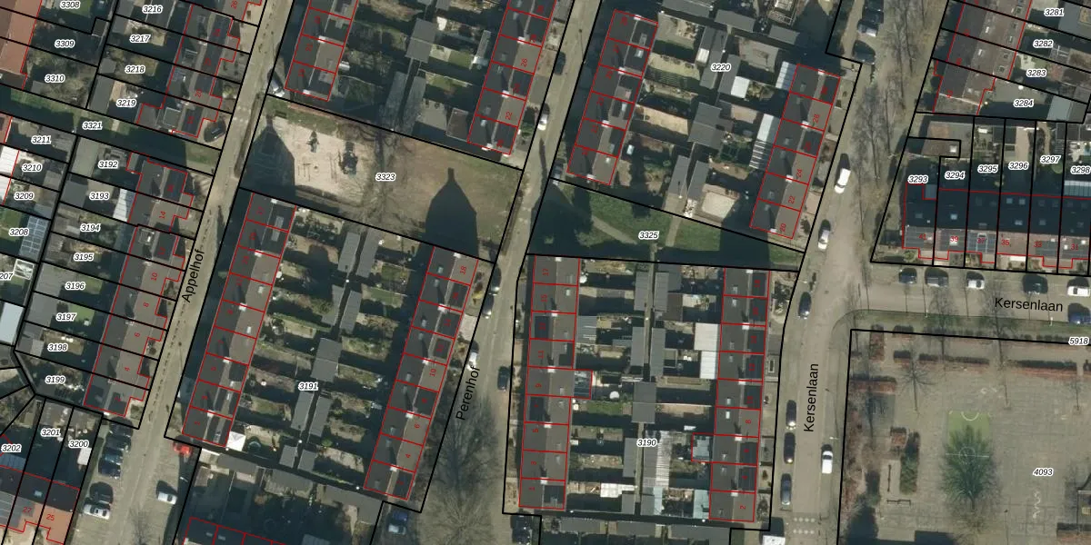 Het perceel waarop Perenhof 17 staat heeft een oppervlakte van 3163 m². Dit is een zeer groot perceel. De perceeloppervlakte wordt geregistreerd door het Kadaster. Gedetailleerde informatie over de maten van dit perceel kunt u vinden in het rapport Kadastrale kaart met maatvoering van Perenhof 17.