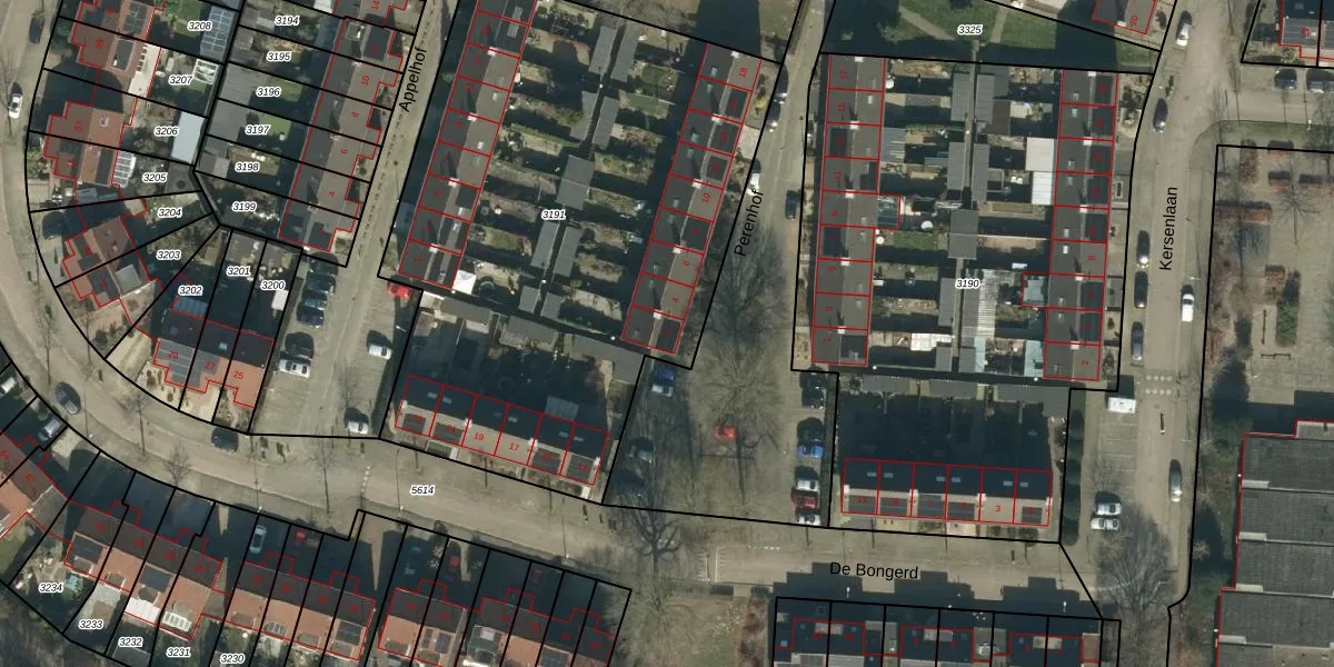Het perceel waarop Perenhof 2 staat heeft een oppervlakte van 3151 m². Dit is een zeer groot perceel. De perceeloppervlakte wordt geregistreerd door het Kadaster. Gedetailleerde informatie over de maten van dit perceel kunt u vinden in het rapport Kadastrale kaart met maatvoering van Perenhof 2.