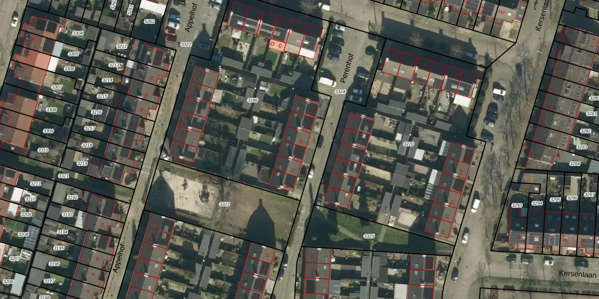 Het perceel waarop Perenhof 24 staat heeft een oppervlakte van 2623 m². Dit is een zeer groot perceel. De perceeloppervlakte wordt geregistreerd door het Kadaster. Gedetailleerde informatie over de maten van dit perceel kunt u vinden in het rapport Kadastrale kaart met maatvoering van Perenhof 24.