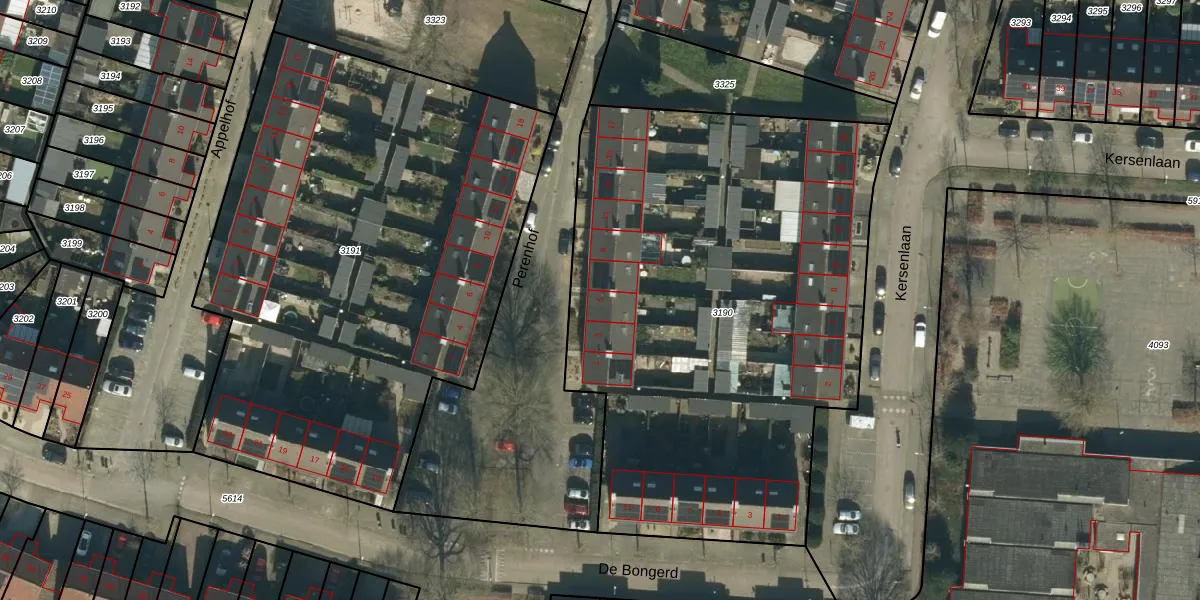 Het perceel waarop Perenhof 5 staat heeft een oppervlakte van 3163 m². Dit is een zeer groot perceel. De perceeloppervlakte wordt geregistreerd door het Kadaster. Gedetailleerde informatie over de maten van dit perceel kunt u vinden in het rapport Kadastrale kaart met maatvoering van Perenhof 5.