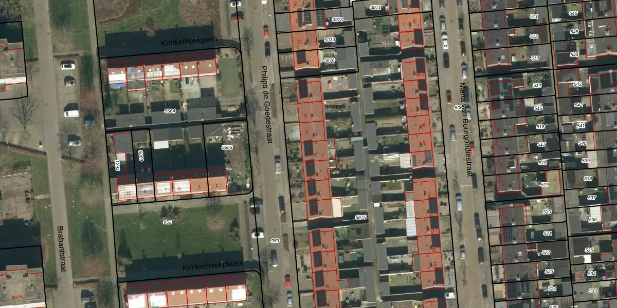 Het perceel waarop Philips de Goedestraat 35 staat heeft een oppervlakte van 6353 m². Dit is een zeer groot perceel. De perceeloppervlakte wordt geregistreerd door het Kadaster. Gedetailleerde informatie over de maten van dit perceel kunt u vinden in het rapport Kadastrale kaart met maatvoering van Philips de Goedestraat 35.