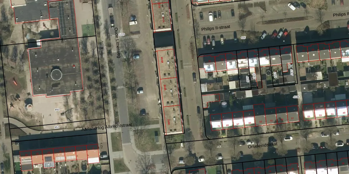 Het perceel waarop Philips de Schonestraat 10 staat heeft een oppervlakte van 2311 m². Dit is een zeer groot perceel. De perceeloppervlakte wordt geregistreerd door het Kadaster. Gedetailleerde informatie over de maten van dit perceel kunt u vinden in het rapport Kadastrale kaart met maatvoering van Philips de Schonestraat 10.
