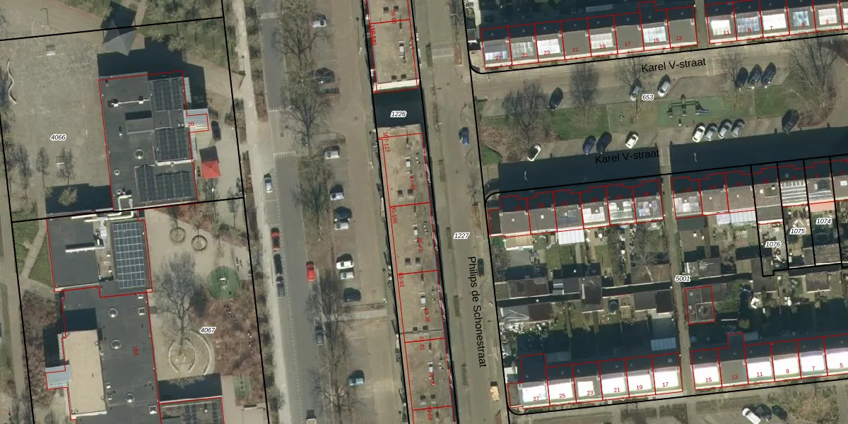 Het perceel waarop Philips de Schonestraat 42 staat heeft een oppervlakte van 2311 m². Dit is een zeer groot perceel. De perceeloppervlakte wordt geregistreerd door het Kadaster. Gedetailleerde informatie over de maten van dit perceel kunt u vinden in het rapport Kadastrale kaart met maatvoering van Philips de Schonestraat 42.