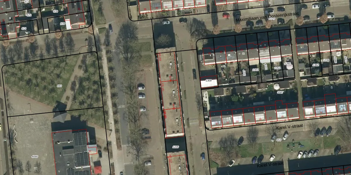 Het perceel waarop het adres ligt is OSS00-K-1226. De afkorting 'OSS00' staat voor kadastrale gemeente Oss. De gemiddelde perceelgrootte in Oss is 2394,12 m². Dit perceel is kleiner: de perceeloppervlakte bedraagt 2311 m². Het grootste perceel in de kadastrale gemeente is 36,1 ha. Het kleinste perceel heeft een oppervlakte van 0 m². Op het perceel liggen in totaal 99 adressen. In de Basisregistratie Kadaster (BRK) werden de grenzen van het perceel geregistreerd op 02-06-2009.