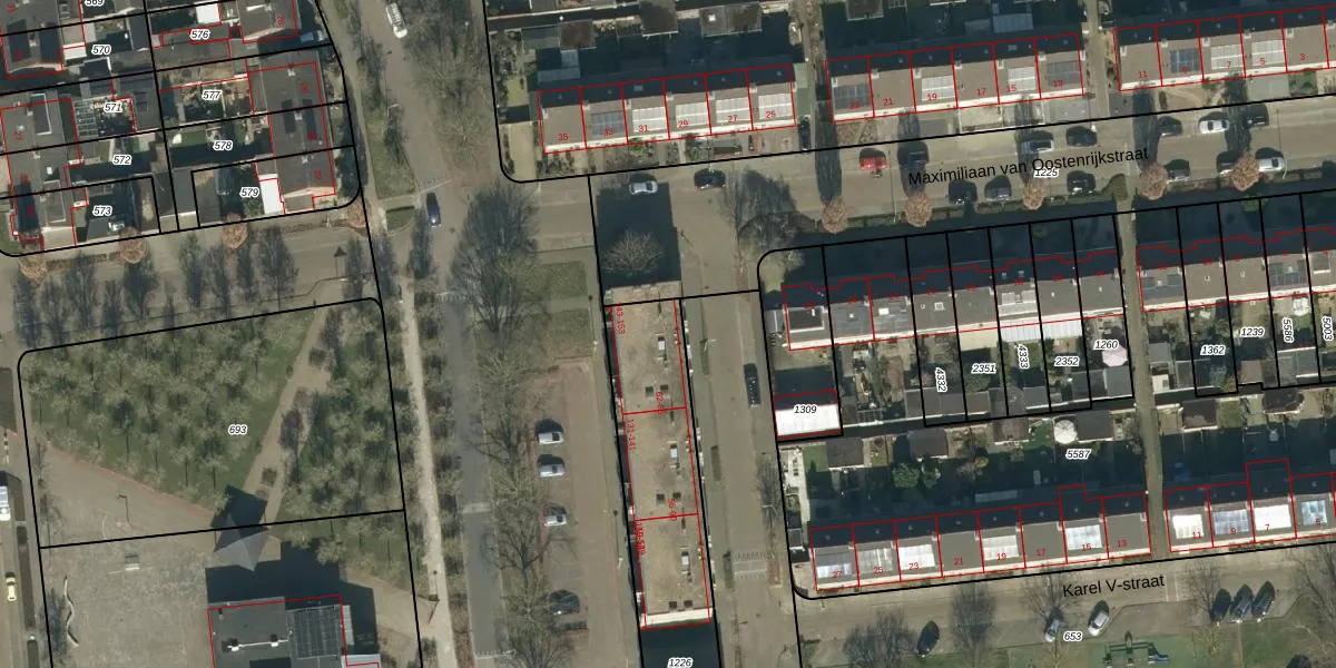 Het perceel waarop het adres ligt is OSS00-K-1226. De afkorting 'OSS00' staat voor kadastrale gemeente Oss. De gemiddelde perceelgrootte in Oss is 2393,92 m². Dit perceel is kleiner: de perceeloppervlakte bedraagt 2311 m². De grootste perceeloppervlakte in de kadastrale gemeente is 36,1 ha. De kleinste oppervlakte bedraagt 0 m². Op het perceel zijn 99 adressen aanwezig. De huidige grenzen van het perceel zijn digitaal in de Basisregistratie Kadaster (BRK) geregistreerd op 02-06-2009.