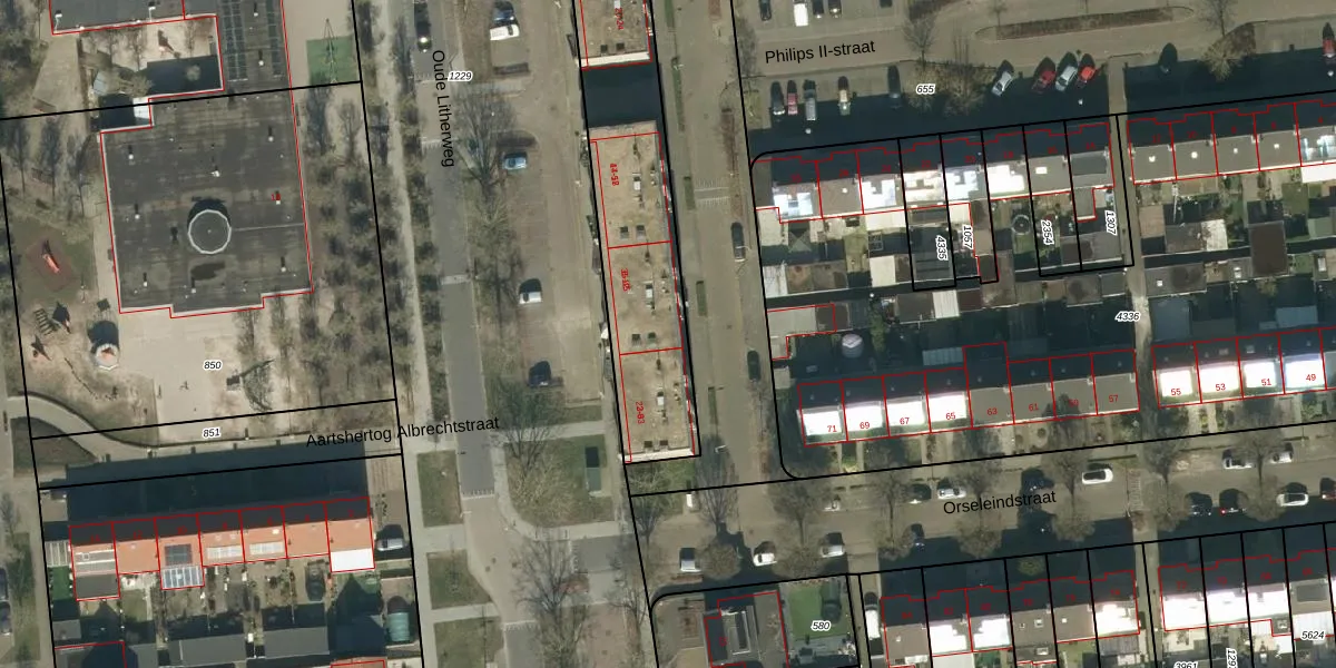 Het perceel waarop Philips de Schonestraat 8 staat heeft een oppervlakte van 2311 m². Dit is een zeer groot perceel. De perceeloppervlakte wordt geregistreerd door het Kadaster. Gedetailleerde informatie over de maten van dit perceel kunt u vinden in het rapport Kadastrale kaart met maatvoering van Philips de Schonestraat 8.