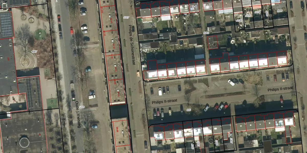 Het perceel waarop Philips II-straat 27 staat heeft een oppervlakte van 4272 m². Dit is een zeer groot perceel. De perceeloppervlakte wordt geregistreerd door het Kadaster. Gedetailleerde informatie over de maten van dit perceel kunt u vinden in het rapport Kadastrale kaart met maatvoering van Philips II-straat 27.