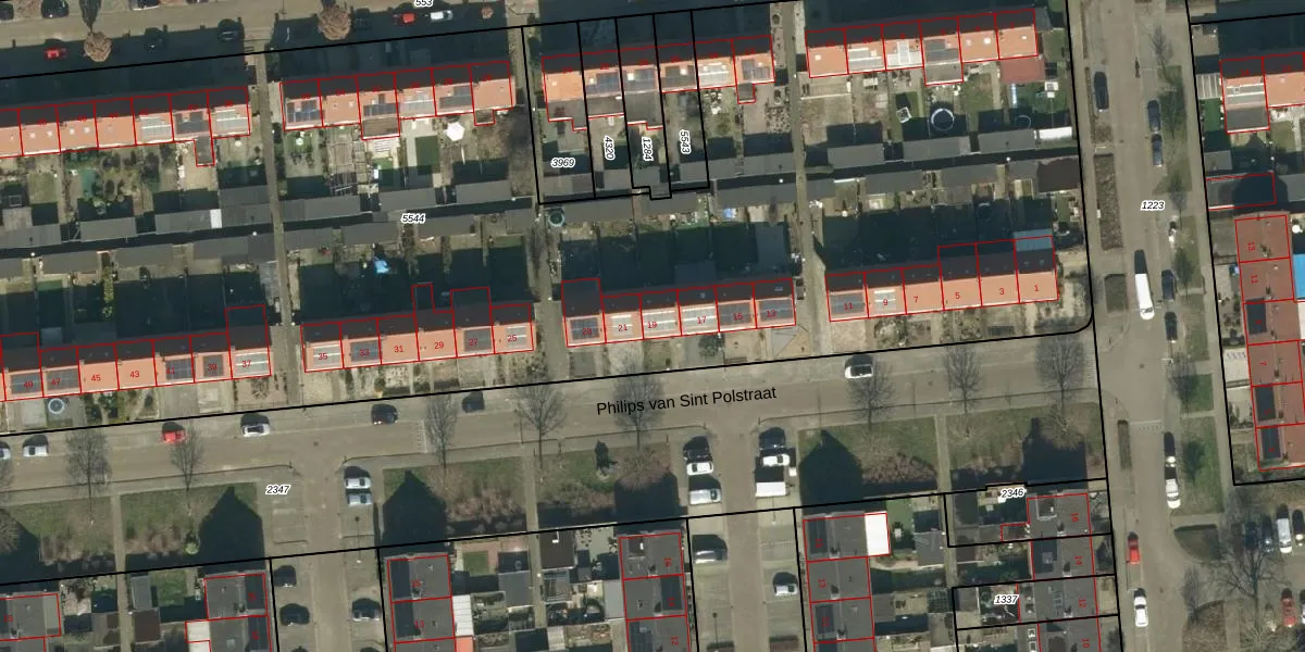 Het perceel waarop Philips van Sint Polstraat 19 staat heeft een oppervlakte van 8946 m². Dit is een zeer groot perceel. De perceeloppervlakte wordt geregistreerd door het Kadaster. Gedetailleerde informatie over de maten van dit perceel kunt u vinden in het rapport Kadastrale kaart met maatvoering van Philips van Sint Polstraat 19.