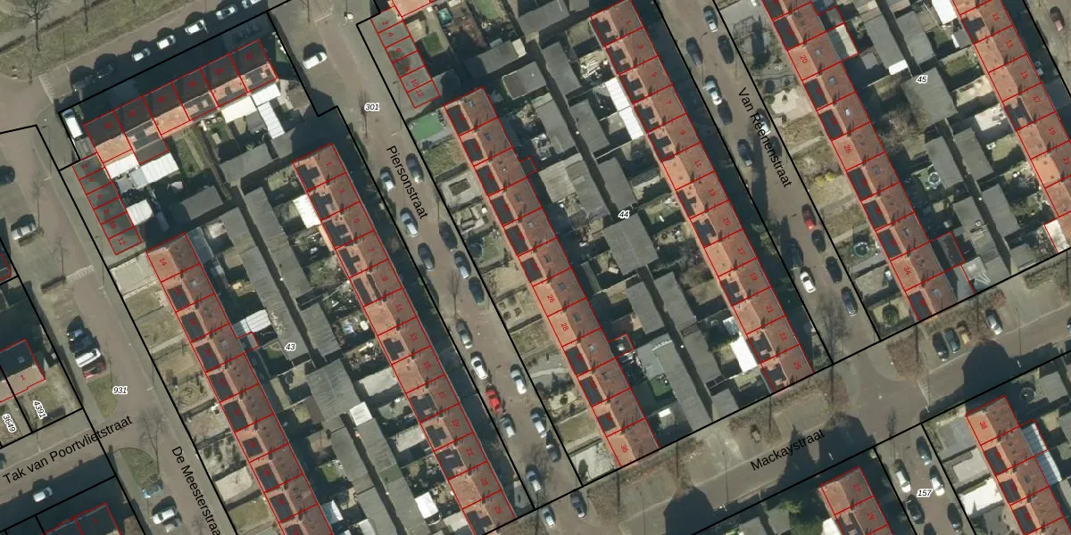 Het perceel waarop Piersonstraat 24 staat heeft een oppervlakte van 5368 m². Dit is een zeer groot perceel. De perceeloppervlakte wordt geregistreerd door het Kadaster. Gedetailleerde informatie over de maten van dit perceel kunt u vinden in het rapport Kadastrale kaart met maatvoering van Piersonstraat 24.