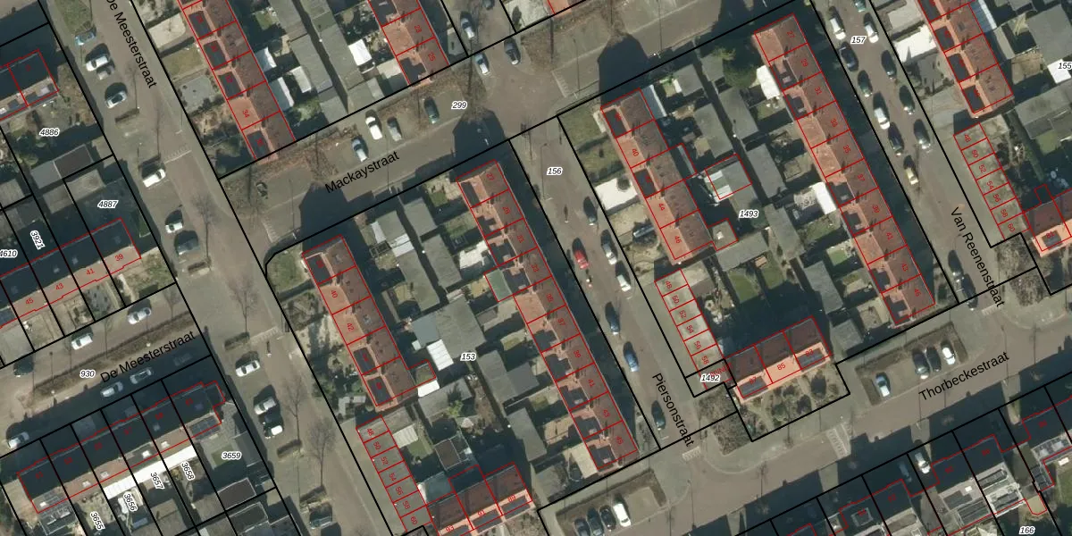Het perceel waarop Piersonstraat 33 staat heeft een oppervlakte van 3431 m². Dit is een zeer groot perceel. De perceeloppervlakte wordt geregistreerd door het Kadaster. Gedetailleerde informatie over de maten van dit perceel kunt u vinden in het rapport Kadastrale kaart met maatvoering van Piersonstraat 33.