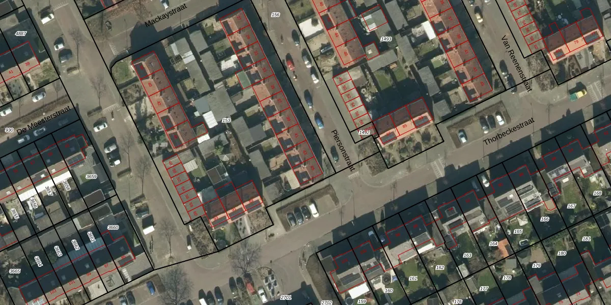Het perceel waarop Piersonstraat 43 staat heeft een oppervlakte van 3431 m². Dit is een zeer groot perceel. De perceeloppervlakte wordt geregistreerd door het Kadaster. Gedetailleerde informatie over de maten van dit perceel kunt u vinden in het rapport Kadastrale kaart met maatvoering van Piersonstraat 43.