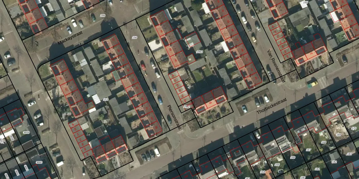 Het perceel waarop Piersonstraat 54 staat heeft een oppervlakte van 3410 m². Dit is een zeer groot perceel. De perceeloppervlakte wordt geregistreerd door het Kadaster. Gedetailleerde informatie over de maten van dit perceel kunt u vinden in het rapport Kadastrale kaart met maatvoering van Piersonstraat 54.