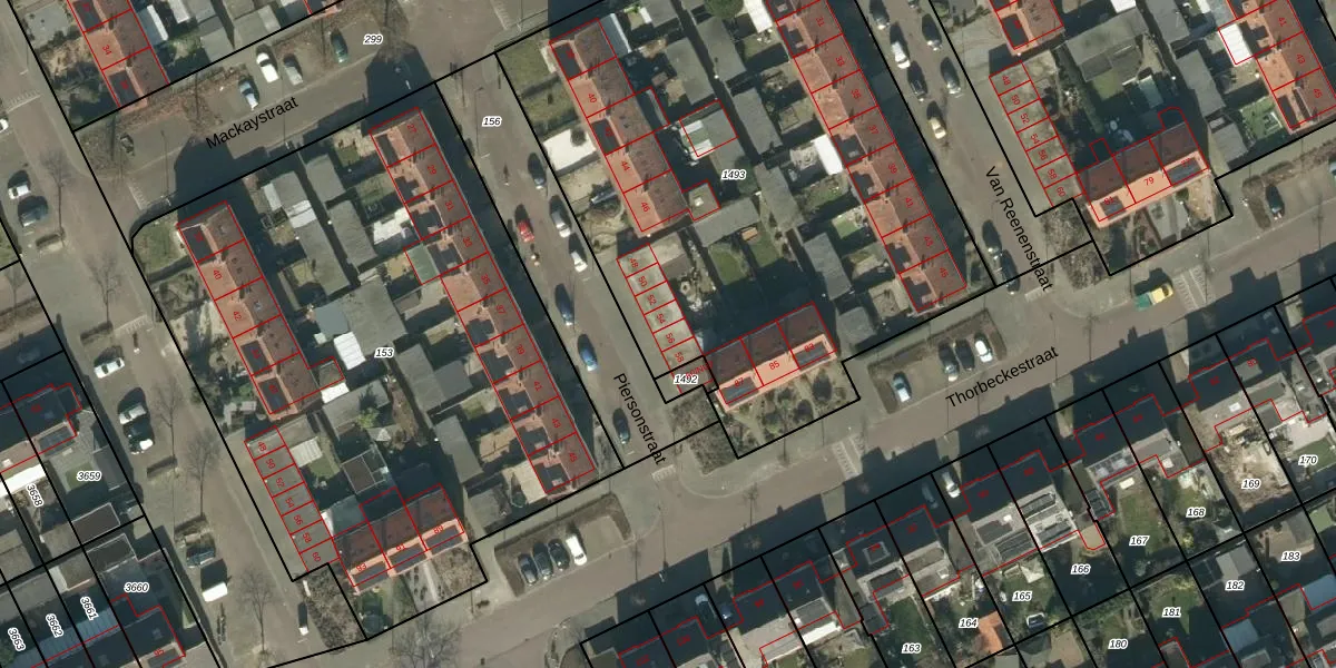 Het perceel waarop Piersonstraat 56 staat heeft een oppervlakte van 3410 m². Dit is een zeer groot perceel. De perceeloppervlakte wordt geregistreerd door het Kadaster. Gedetailleerde informatie over de maten van dit perceel kunt u vinden in het rapport Kadastrale kaart met maatvoering van Piersonstraat 56.