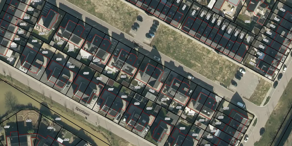 Het perceel waarop Podium 16 staat heeft een oppervlakte van 258 m². Dit is een middelgroot perceel. De perceeloppervlakte wordt geregistreerd door het Kadaster. Gedetailleerde informatie over de maten van dit perceel kunt u vinden in het rapport Kadastrale kaart met maatvoering van Podium 16.