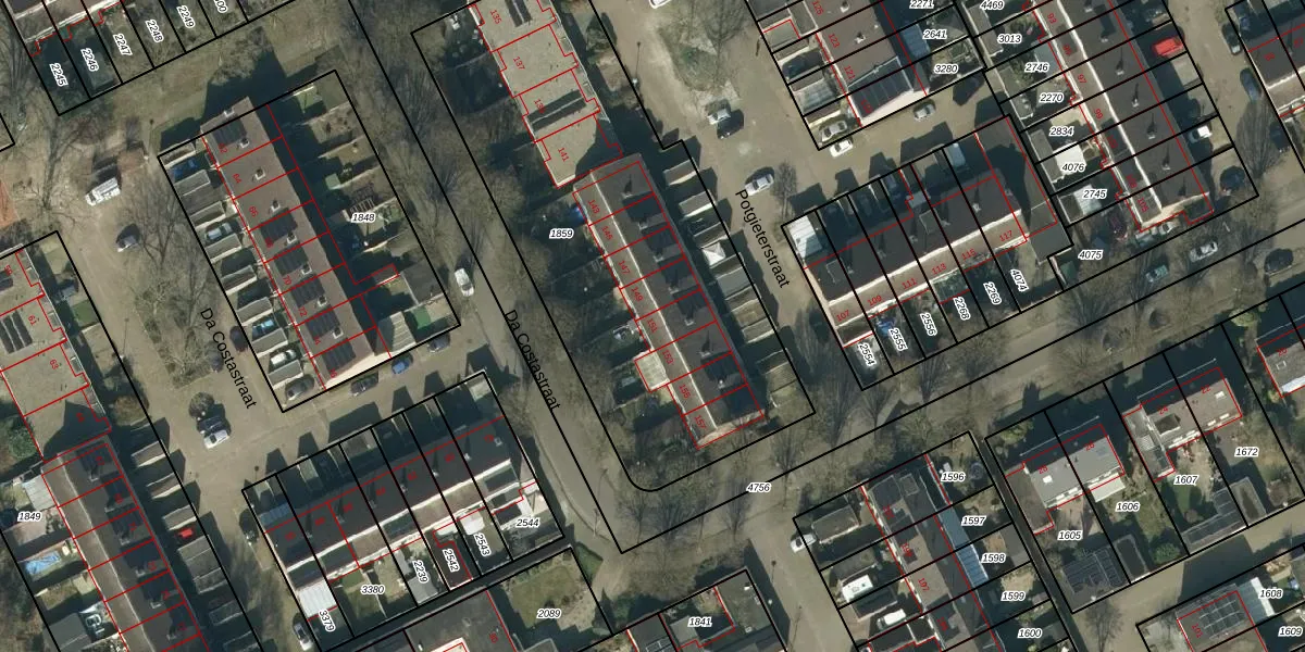 Het perceel waarop Potgieterstraat 151 staat heeft een oppervlakte van 2279 m². Dit is een zeer groot perceel. De perceeloppervlakte wordt geregistreerd door het Kadaster. Gedetailleerde informatie over de maten van dit perceel kunt u vinden in het rapport Kadastrale kaart met maatvoering van Potgieterstraat 151.