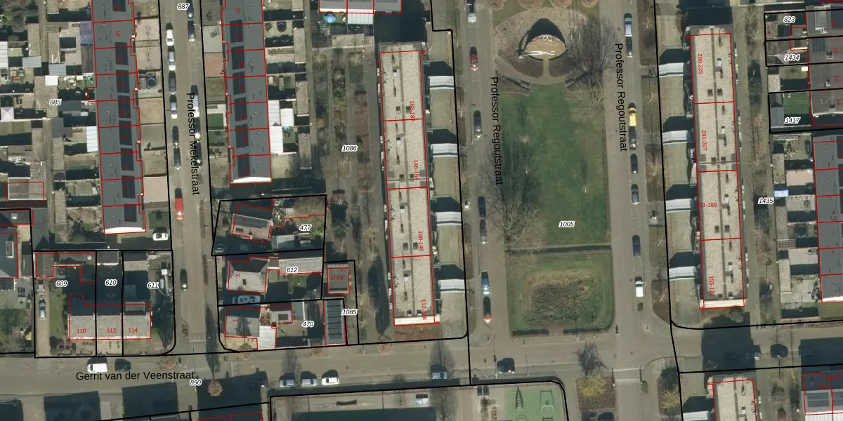 De informatie over dit adres is afkomstig uit officiële overheidsregistraties, voornamelijk de Basisregistratie Adressen en Gebouwen (BAG) en de Basisregistratie Kadaster (BRK). Deze gegevens worden beheerd door respectievelijk gemeenten en het Kadaster, en worden regelmatig bijgewerkt. Energielabelgegevens komen uit de database van de Rijksdienst voor Ondernemend Nederland (RVO).
