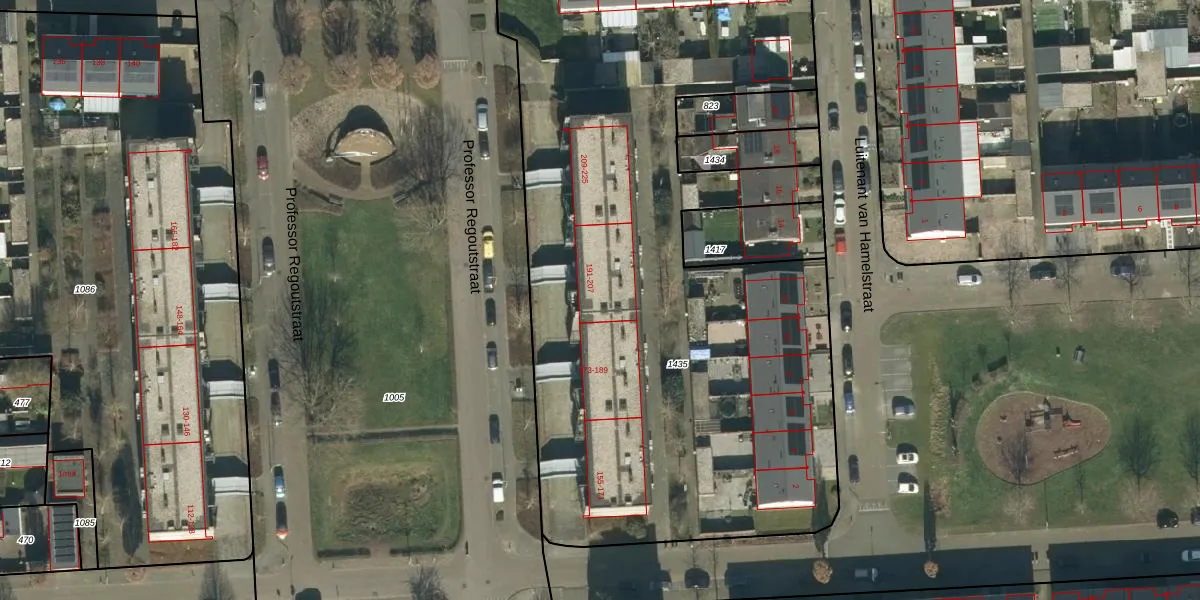 Het perceel waarop Professor Regoutstraat 193 staat heeft een oppervlakte van 4579 m². Dit is een zeer groot perceel. De perceeloppervlakte wordt geregistreerd door het Kadaster. Gedetailleerde informatie over de maten van dit perceel kunt u vinden in het rapport Kadastrale kaart met maatvoering van Professor Regoutstraat 193.