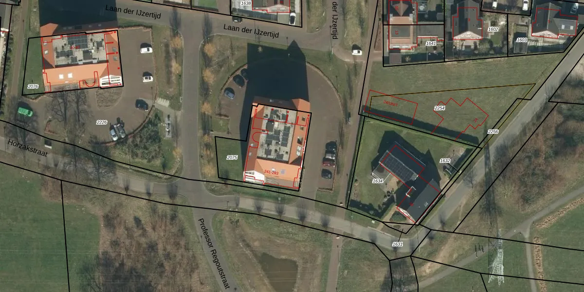 Professor Regoutstraat 261 is gelegen op kadastraal perceel OSS00H2075. Deze kadastrale aanduiding is uniek en wordt gebruikt door het Kadaster om eigendomsrechten en andere zakelijke rechten vast te leggen. Het perceel maakt onderdeel uit van de kadastrale gemeente Oss.