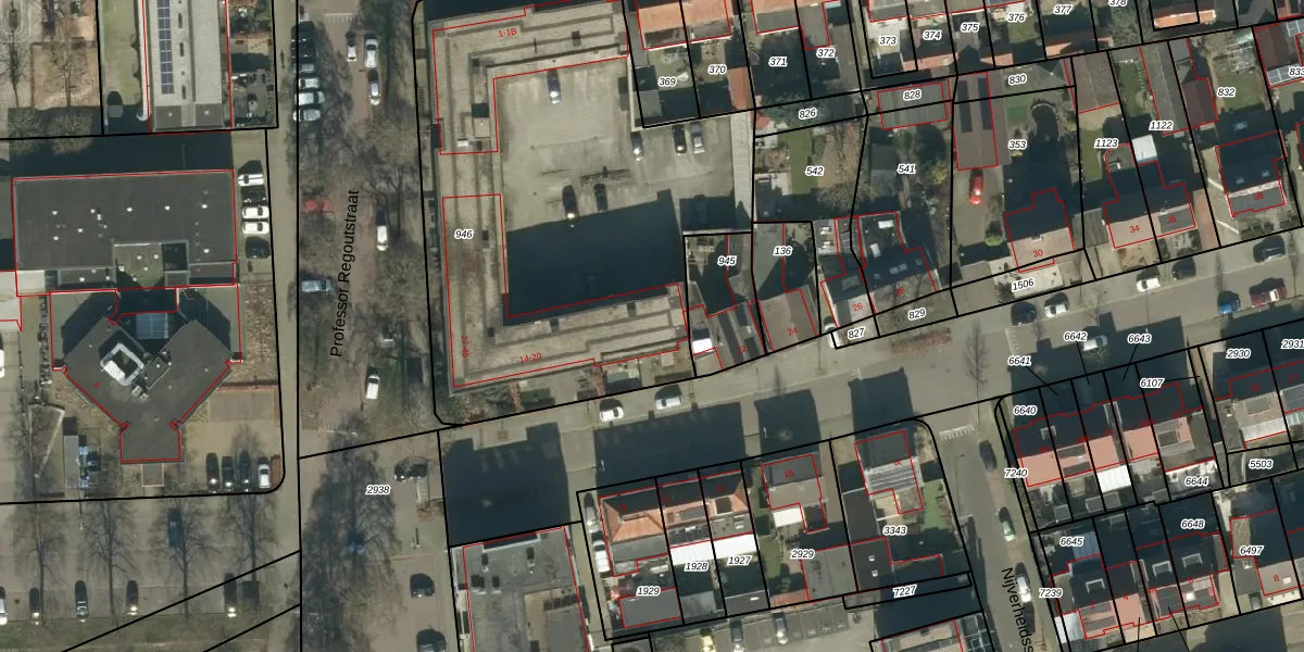 Het perceel waarop Professor Regoutstraat 35-H staat heeft een oppervlakte van 2634 m². Dit is een zeer groot perceel. De perceeloppervlakte wordt geregistreerd door het Kadaster. Gedetailleerde informatie over de maten van dit perceel kunt u vinden in het rapport Kadastrale kaart met maatvoering van Professor Regoutstraat 35-H.