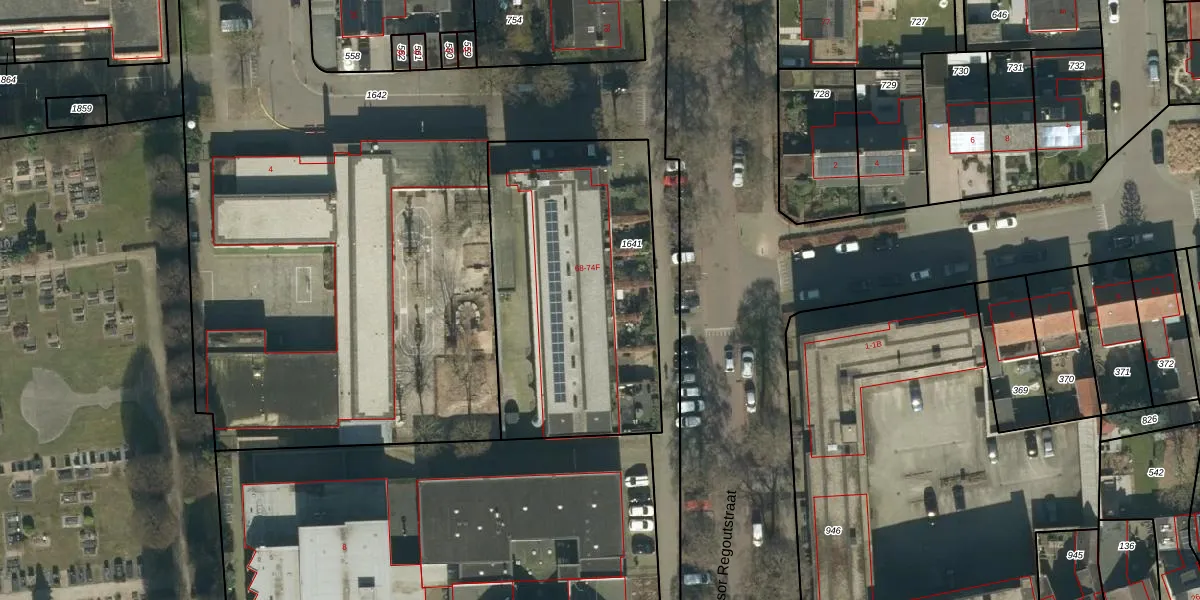 Professor Regoutstraat 74-C is gelegen op kadastraal perceel OSS00G1641. Deze kadastrale aanduiding is uniek en wordt gebruikt door het Kadaster om eigendomsrechten en andere zakelijke rechten vast te leggen. Het perceel maakt onderdeel uit van de kadastrale gemeente Oss.