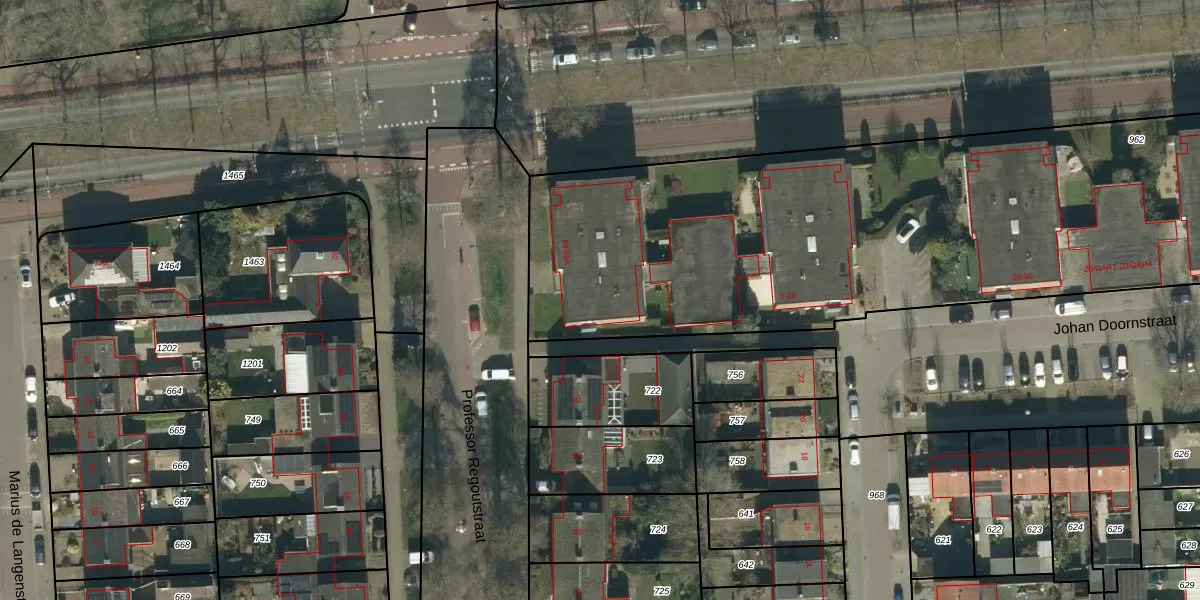 Het perceel waarop Professor Regoutstraat 89 staat heeft een oppervlakte van 5645 m². Dit is een zeer groot perceel. De perceeloppervlakte wordt geregistreerd door het Kadaster. Gedetailleerde informatie over de maten van dit perceel kunt u vinden in het rapport Kadastrale kaart met maatvoering van Professor Regoutstraat 89.