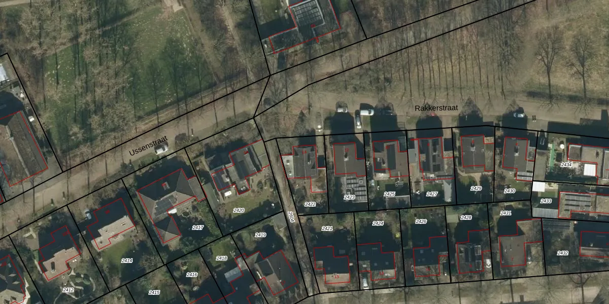 Gebruik de zoekbalk of klik op een perceel voor informatie over de adressen binnen dit perceel.