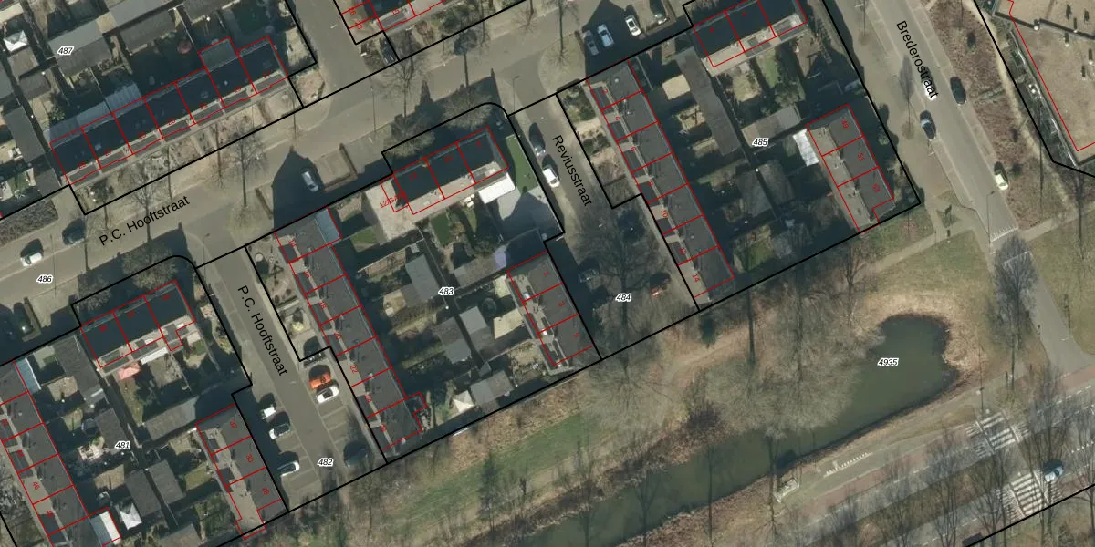 Het perceel waarop Reviusstraat 1 staat heeft een oppervlakte van 2399 m². Dit is een zeer groot perceel. De perceeloppervlakte wordt geregistreerd door het Kadaster. Gedetailleerde informatie over de maten van dit perceel kunt u vinden in het rapport Kadastrale kaart met maatvoering van Reviusstraat 1.