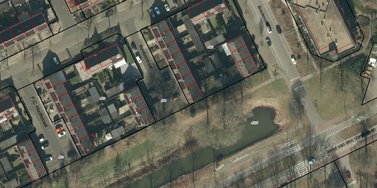 Het perceel waarop Reviusstraat 14 staat heeft een oppervlakte van 2379 m². Dit is een zeer groot perceel. De perceeloppervlakte wordt geregistreerd door het Kadaster. Gedetailleerde informatie over de maten van dit perceel kunt u vinden in het rapport Kadastrale kaart met maatvoering van Reviusstraat 14.