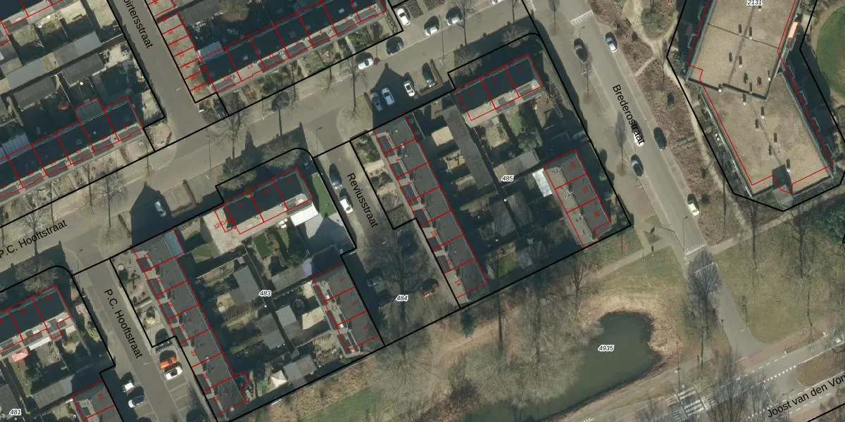 Het perceel waarop Reviusstraat 8 staat heeft een oppervlakte van 2379 m². Dit is een zeer groot perceel. De perceeloppervlakte wordt geregistreerd door het Kadaster. Gedetailleerde informatie over de maten van dit perceel kunt u vinden in het rapport Kadastrale kaart met maatvoering van Reviusstraat 8.