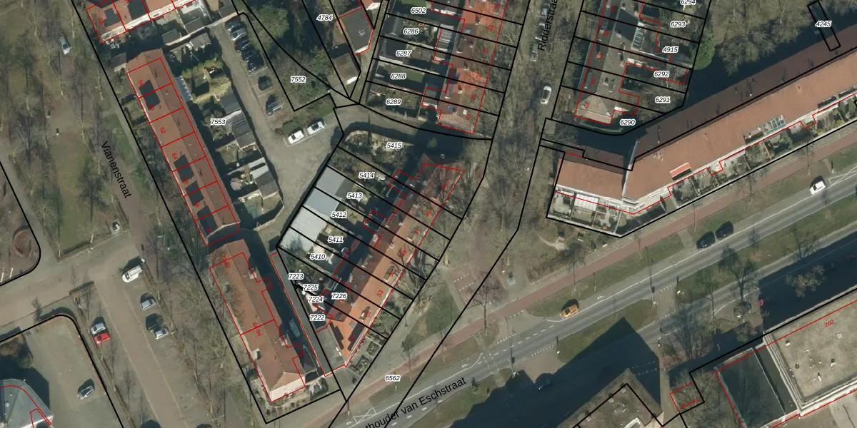 Het perceel waarop Ridderstraat 45 staat heeft een oppervlakte van 185 m². Dit is een middelgroot perceel. De perceeloppervlakte wordt geregistreerd door het Kadaster. Gedetailleerde informatie over de maten van dit perceel kunt u vinden in het rapport Kadastrale kaart met maatvoering van Ridderstraat 45.