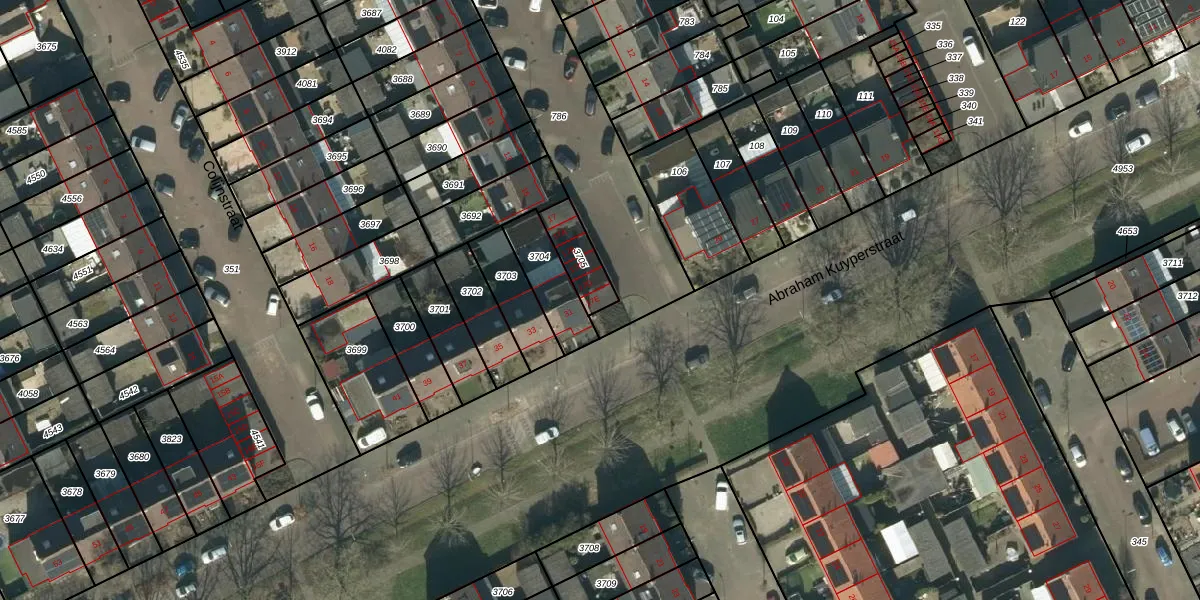 Het perceel waarop het adres ligt is OSS00-L-3705. De afkorting 'OSS00' staat voor kadastrale gemeente Oss. Het perceel is kleiner dan gemiddeld in Oss. Het perceel is 110 m² groot, terwijl het gemiddelde ligt op 2394,02 m². Het kleinste perceel in de kadastrale gemeente is 0 m² groot. De grootste perceeloppervlakte is 36,1 ha. Er zijn 6 adressen aanwezig op het perceel. In de Basisregistratie Kadaster (BRK) werden de grenzen van het perceel geregistreerd op 11-06-2009.