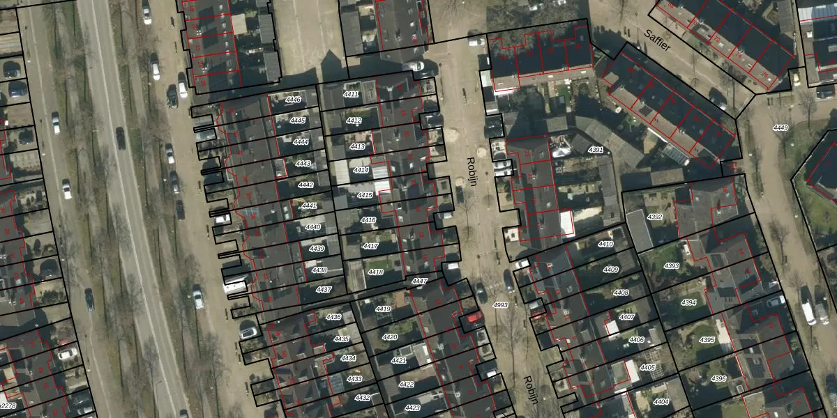 Gebruik de zoekbalk of klik op een perceel voor informatie over de adressen binnen dit perceel.