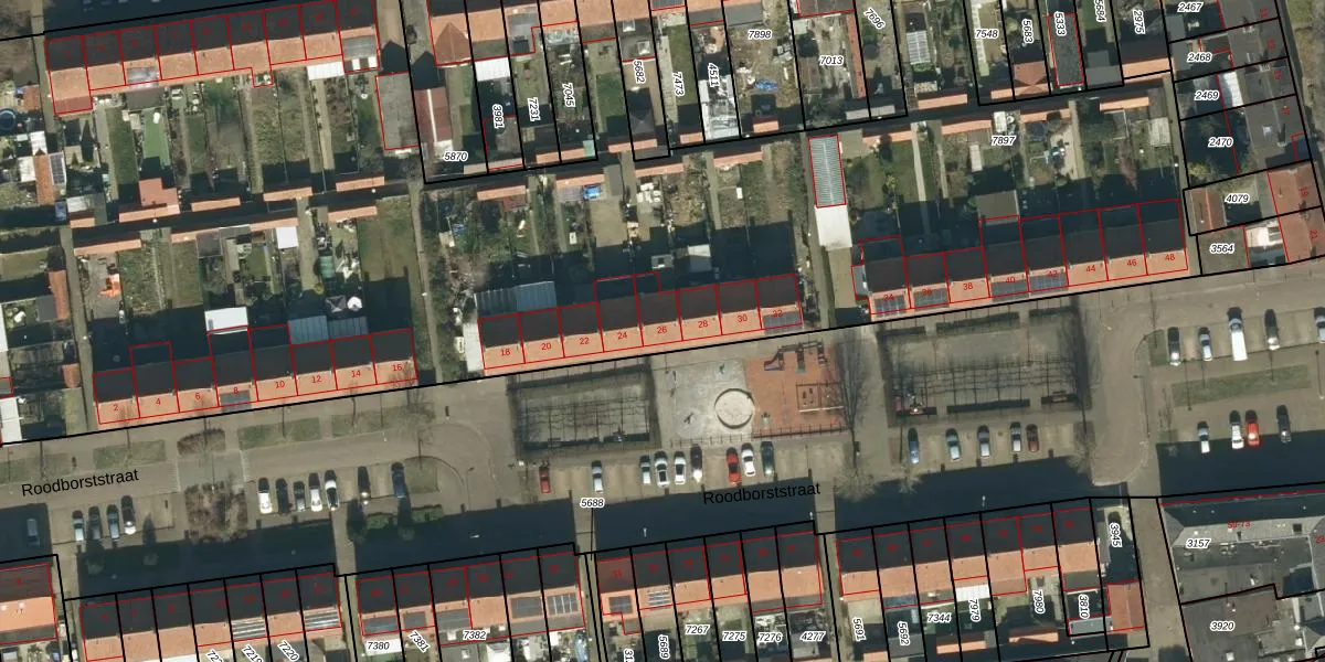 Roodborststraat 26 is gelegen op kadastraal perceel OSS00E7897. Deze kadastrale aanduiding is uniek en wordt gebruikt door het Kadaster om eigendomsrechten en andere zakelijke rechten vast te leggen. Het perceel maakt onderdeel uit van de kadastrale gemeente Oss.