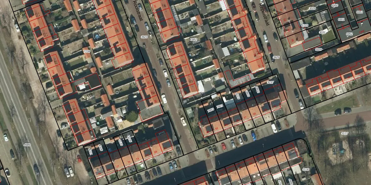 Het perceel waarop Rootstraat 30 staat heeft een oppervlakte van 4354 m². Dit is een zeer groot perceel. De perceeloppervlakte wordt geregistreerd door het Kadaster. Gedetailleerde informatie over de maten van dit perceel kunt u vinden in het rapport Kadastrale kaart met maatvoering van Rootstraat 30.