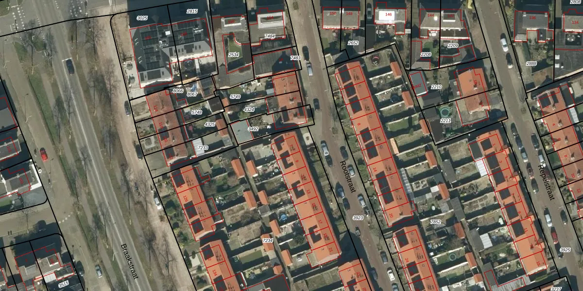 Het perceel waarop Rootstraat 7 staat heeft een oppervlakte van 5157 m². Dit is een zeer groot perceel. De perceeloppervlakte wordt geregistreerd door het Kadaster. Gedetailleerde informatie over de maten van dit perceel kunt u vinden in het rapport Kadastrale kaart met maatvoering van Rootstraat 7.