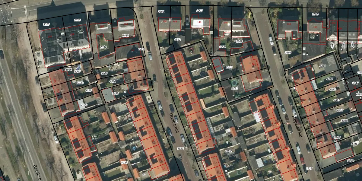 Het perceel waarop Rootstraat 8 staat heeft een oppervlakte van 4354 m². Dit is een zeer groot perceel. De perceeloppervlakte wordt geregistreerd door het Kadaster. Gedetailleerde informatie over de maten van dit perceel kunt u vinden in het rapport Kadastrale kaart met maatvoering van Rootstraat 8.
