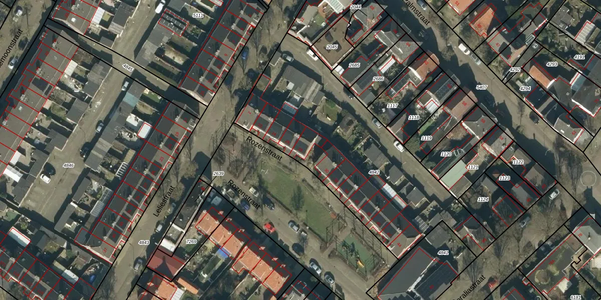 Het perceel waarop Rozenstraat 28 staat heeft een oppervlakte van 2420 m². Dit is een zeer groot perceel. De perceeloppervlakte wordt geregistreerd door het Kadaster. Gedetailleerde informatie over de maten van dit perceel kunt u vinden in het rapport Kadastrale kaart met maatvoering van Rozenstraat 28.