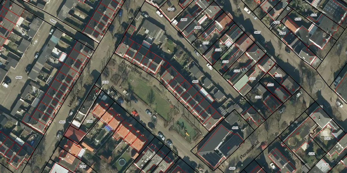 Het perceel waarop Rozenstraat 32 staat heeft een oppervlakte van 2420 m². Dit is een zeer groot perceel. De perceeloppervlakte wordt geregistreerd door het Kadaster. Gedetailleerde informatie over de maten van dit perceel kunt u vinden in het rapport Kadastrale kaart met maatvoering van Rozenstraat 32.