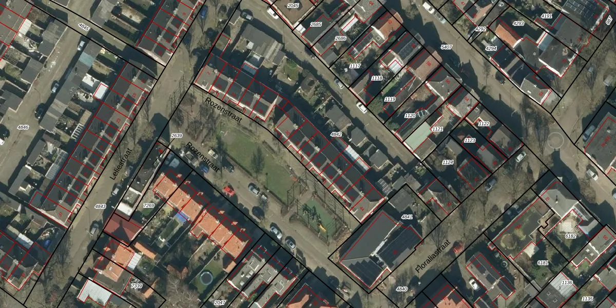 Het perceel waarop Rozenstraat 34 staat heeft een oppervlakte van 2420 m². Dit is een zeer groot perceel. De perceeloppervlakte wordt geregistreerd door het Kadaster. Gedetailleerde informatie over de maten van dit perceel kunt u vinden in het rapport Kadastrale kaart met maatvoering van Rozenstraat 34.