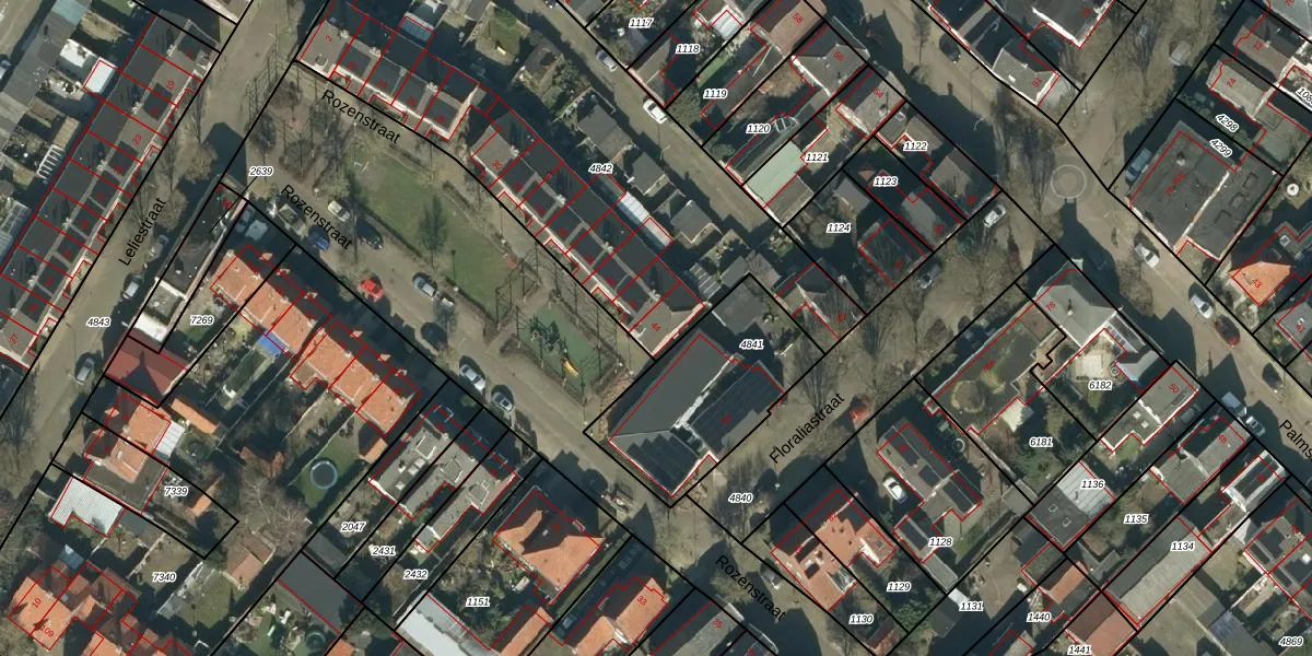Het perceel waarop Rozenstraat 44 staat heeft een oppervlakte van 2420 m². Dit is een zeer groot perceel. De perceeloppervlakte wordt geregistreerd door het Kadaster. Gedetailleerde informatie over de maten van dit perceel kunt u vinden in het rapport Kadastrale kaart met maatvoering van Rozenstraat 44.