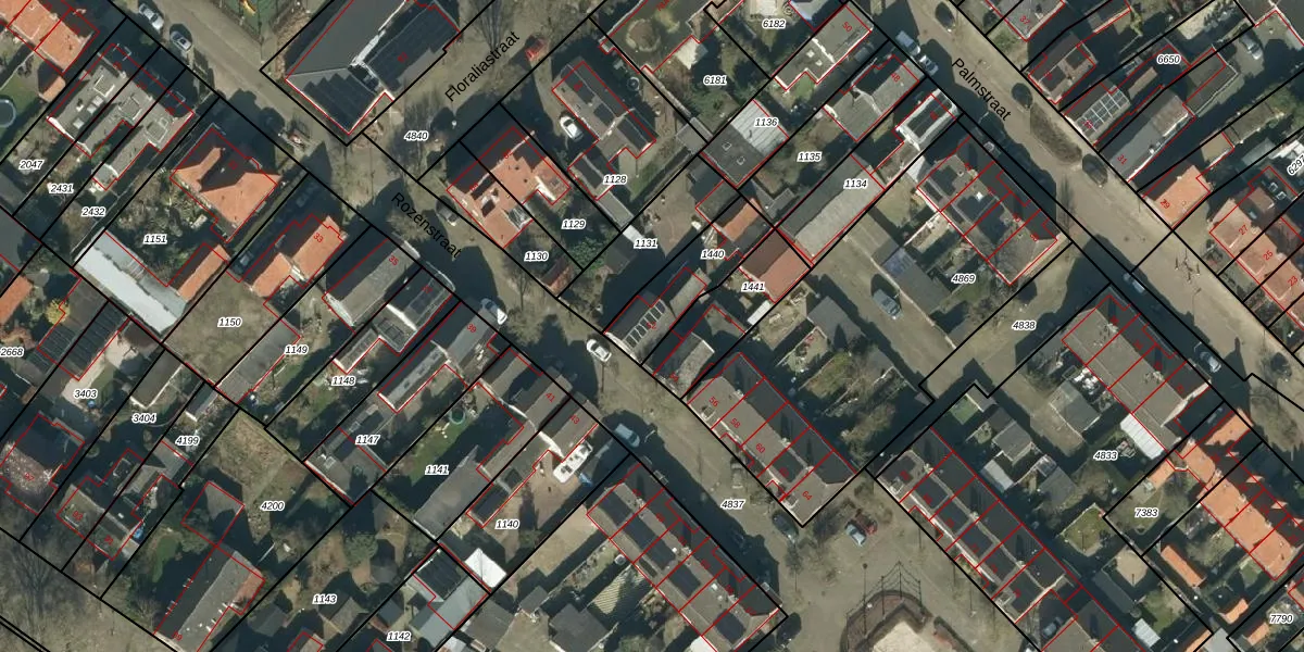 Gebruik de zoekbalk of klik op een perceel voor informatie over de adressen binnen dit perceel.
