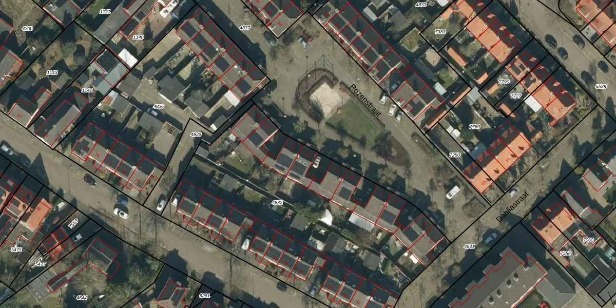 Rozenstraat 65 is gelegen op kadastraal perceel OSS00E4832. Deze kadastrale aanduiding is uniek en wordt gebruikt door het Kadaster om eigendomsrechten en andere zakelijke rechten vast te leggen. Het perceel maakt onderdeel uit van de kadastrale gemeente Oss.