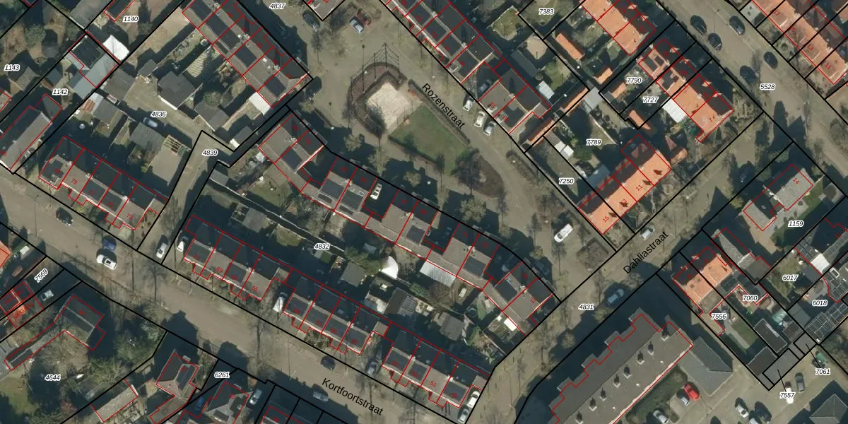 Het perceel waarop Rozenstraat 69 staat heeft een oppervlakte van 3427 m². Dit is een zeer groot perceel. De perceeloppervlakte wordt geregistreerd door het Kadaster. Gedetailleerde informatie over de maten van dit perceel kunt u vinden in het rapport Kadastrale kaart met maatvoering van Rozenstraat 69.