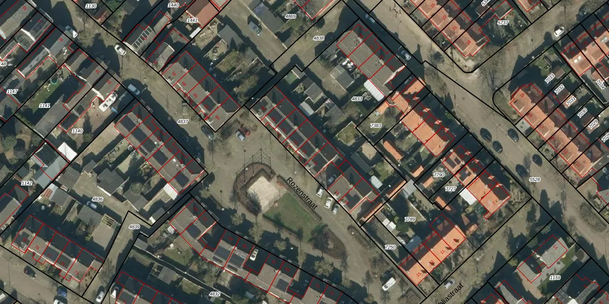 Het perceel waarop Rozenstraat 74 staat heeft een oppervlakte van 1772 m². Dit is een zeer groot perceel. De perceeloppervlakte wordt geregistreerd door het Kadaster. Gedetailleerde informatie over de maten van dit perceel kunt u vinden in het rapport Kadastrale kaart met maatvoering van Rozenstraat 74.