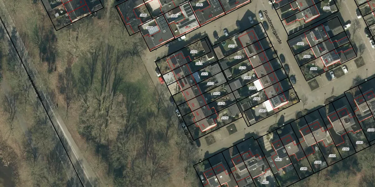 Gebruik de zoekbalk of klik op een perceel voor informatie over de adressen binnen dit perceel.