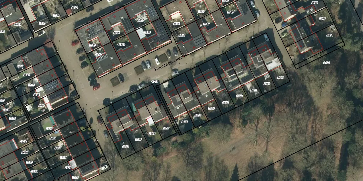 Het perceel waarop Ruusbroecgaarde 67 staat heeft een oppervlakte van 249 m². Dit is een middelgroot perceel. De perceeloppervlakte wordt geregistreerd door het Kadaster. Gedetailleerde informatie over de maten van dit perceel kunt u vinden in het rapport Kadastrale kaart met maatvoering van Ruusbroecgaarde 67.
