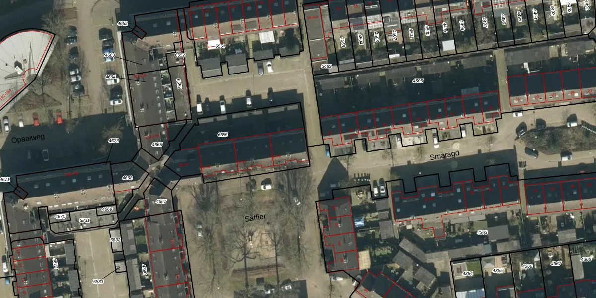 Het perceel waarop Saffier 58 staat heeft een oppervlakte van 889 m². Dit is een groot perceel. De perceeloppervlakte wordt geregistreerd door het Kadaster. Gedetailleerde informatie over de maten van dit perceel kunt u vinden in het rapport Kadastrale kaart met maatvoering van Saffier 58.