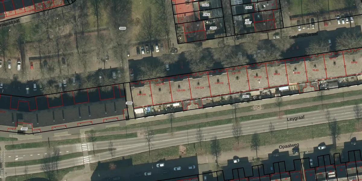 Het perceel waarop Saturnusstraat 126 staat heeft een oppervlakte van 2609 m². Dit is een zeer groot perceel. De perceeloppervlakte wordt geregistreerd door het Kadaster. Gedetailleerde informatie over de maten van dit perceel kunt u vinden in het rapport Kadastrale kaart met maatvoering van Saturnusstraat 126.