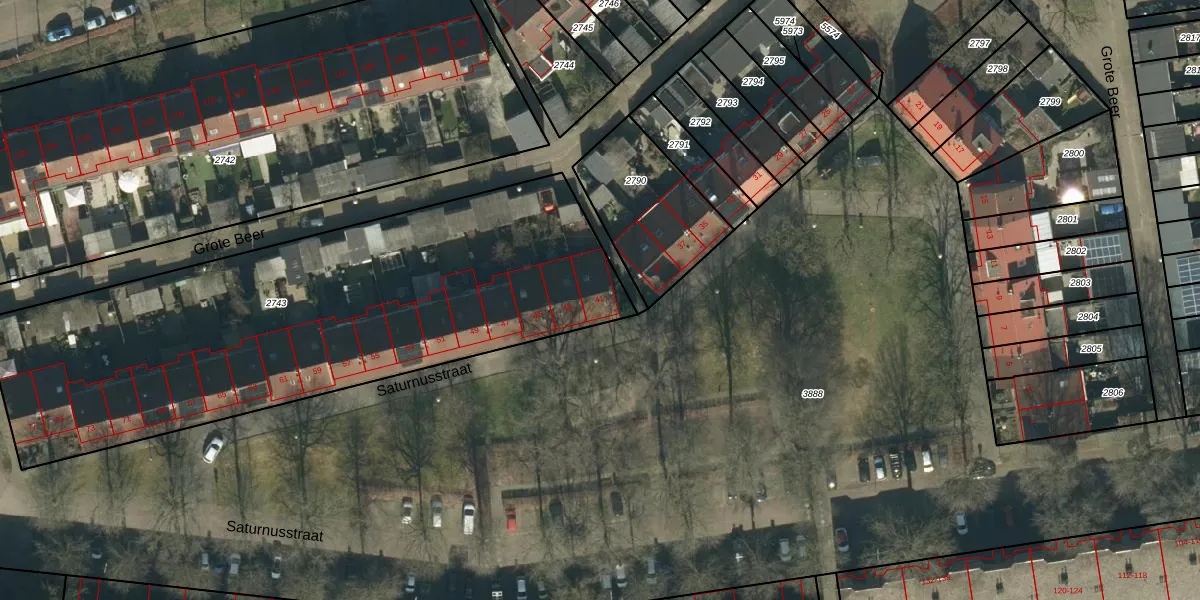 Het perceel waarop Saturnusstraat 41 staat heeft een oppervlakte van 2670 m². Dit is een zeer groot perceel. De perceeloppervlakte wordt geregistreerd door het Kadaster. Gedetailleerde informatie over de maten van dit perceel kunt u vinden in het rapport Kadastrale kaart met maatvoering van Saturnusstraat 41.