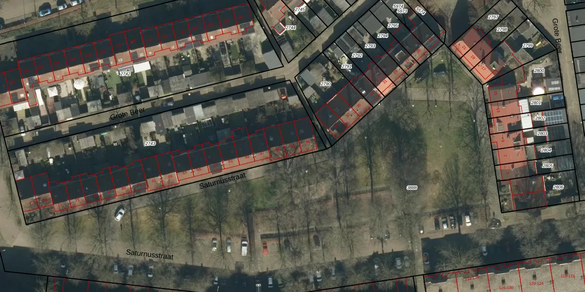 Het perceel waarop Saturnusstraat 43 staat heeft een oppervlakte van 2670 m². Dit is een zeer groot perceel. De perceeloppervlakte wordt geregistreerd door het Kadaster. Gedetailleerde informatie over de maten van dit perceel kunt u vinden in het rapport Kadastrale kaart met maatvoering van Saturnusstraat 43.